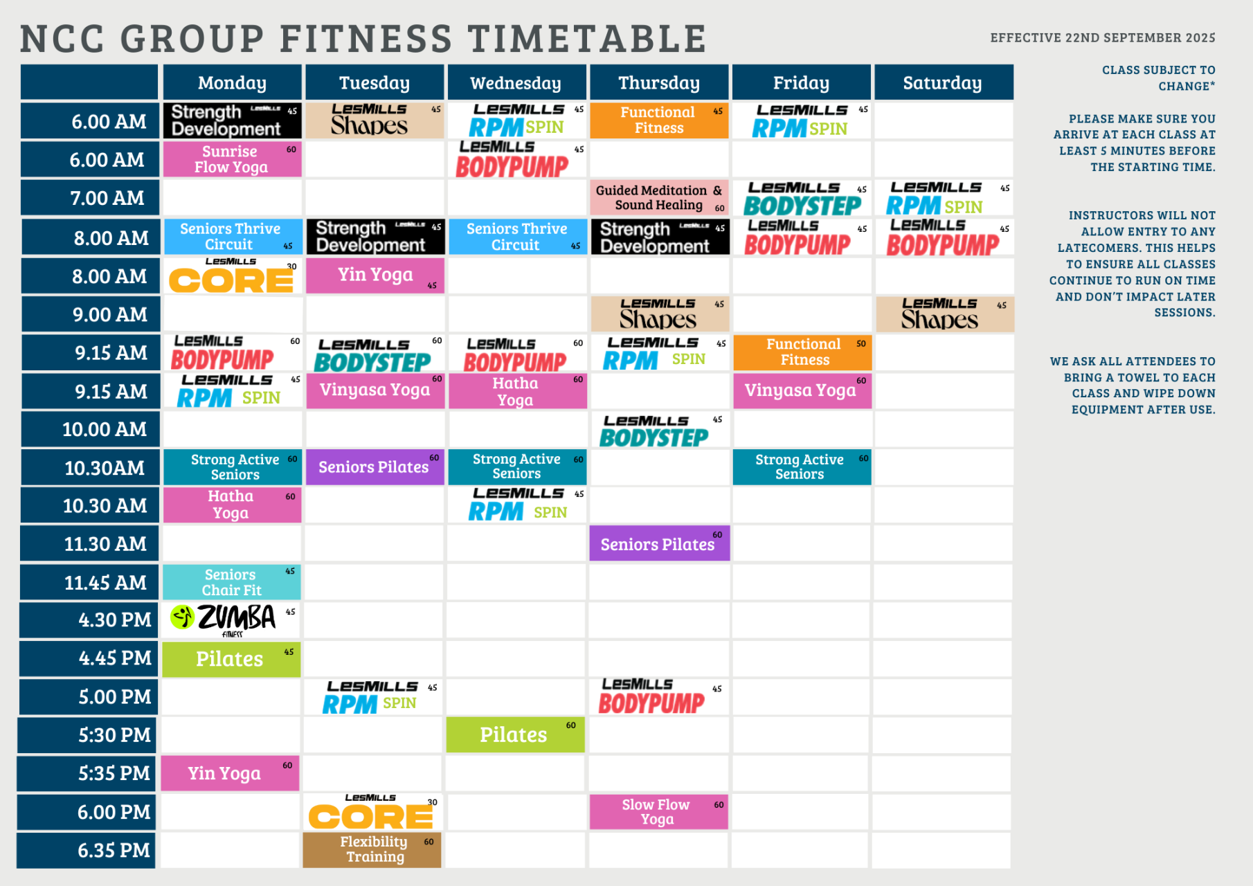 Group Fitness Timetable